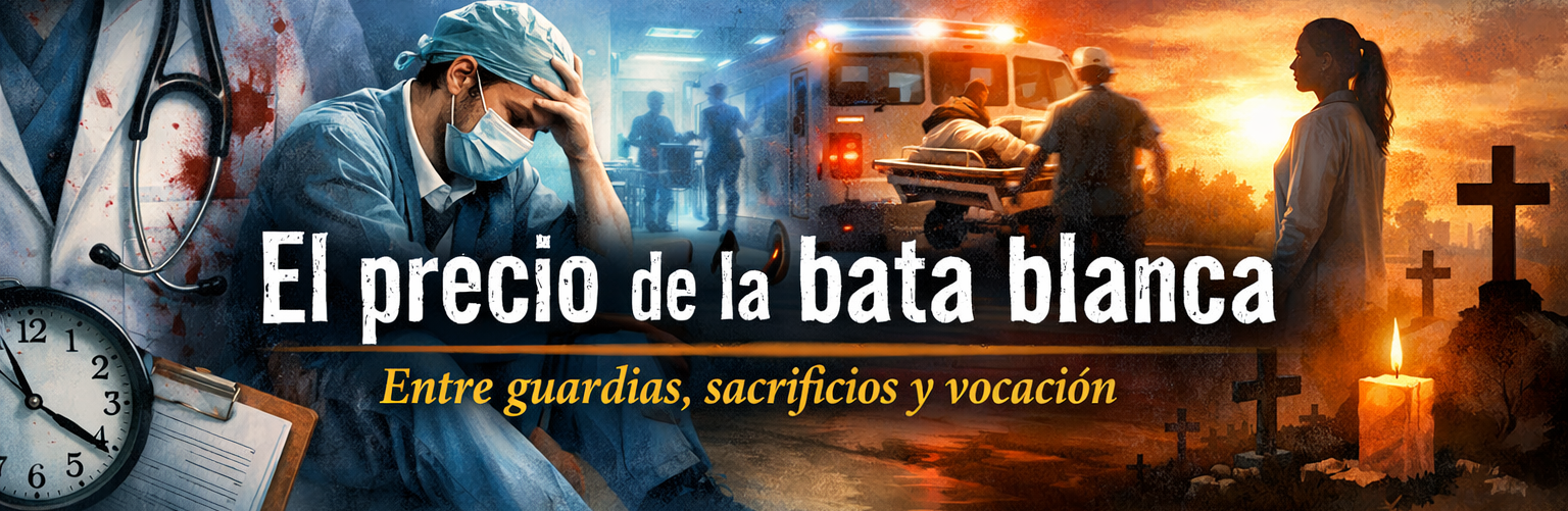 Lo más difícil no era el cansancio físico, sino mantener la lucidez. Tomar decisiones con la mente nublada es una de las mayores exigencias de la guardia. El miedo a equivocarse se vuelve constante. Cada indicación se revisa dos veces, no por inseguridad, sino por responsabilidad. Las guardias largas te muestran tus límites. Hay momentos en los que el cuerpo tiembla, la espalda duele, los pies arden y la mente solo quiere desconectarse. Pero no puedes. Porque hay pacientes esperando, historias clínicas incompletas, emergencias que no eligen horarios. En medio de todo, el compañerismo se vuelve vital. Una palabra de aliento, un relevo breve, un café compartido a la carrera. Pequeños gestos que sostienen cuando todo parece demasiado. Al terminar una guardia de más de 24 horas, uno no se siente victorioso. Se siente vacío. El cuerpo sigue en automático, la mente tarda en apagarse. Llegar a casa y dormir no siempre es inmediato; el cansancio es tan profundo que incluso descansar cuesta. Con el tiempo, esas guardias dejan marcas. Enseñan resistencia, pero también muestran lo frágil que puede ser el equilibrio entre vocación y desgaste. Te obligan a reflexionar sobre hasta dónde se puede exigir sin romper. No escribo esto para glorificar el sacrificio. Lo escribo porque es parte de la verdad. Porque las guardias largas forman médicos, sí, pero también cobran un precio. Y ese precio no siempre se ve. Cada guardia de más de veinticuatro horas me recordó que la bata blanca pesa. No solo por lo que representa, sino por todo lo que exige. Que detrás del médico hay un ser humano cansado, luchando por mantenerse en pie mientras cuida de otros. Ese fue uno de los aprendizajes más duros: entender que servir no significa dejar de ser humano, aunque muchas veces el sistema lo olvide.